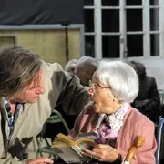 《与玛格丽特的午后》中也有一位读书人——九十岁的孤寡老太玛格丽特。玛格丽特住在养老院里,每天的娱乐是中午步行去公园,坐在阳光下的长凳上读书。读着读着,就遇见了也常去公园长凳上吃午饭的乡巴佬杰尔曼。这个杰尔曼从小便有阅读障碍,个头胖大粗鄙,被朋友们取笑调弄也不怎么在乎,总之就是个粗线条的下里巴人。杰尔曼与玛格丽特因数鸽子而相识,因卡缪的《瘟疫》一书而相知,谁也没想到完全不是读书料的杰尔曼竟拥有丰富细腻的想象力,他听玛格丽特读书听得入了迷,每天都准时等待那个和书籍的约会。