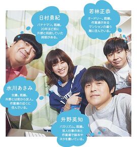剧中全部的场景就是三位演员的家。第一季除了有两三集在其中两位:二阶堂富美和笨蛋主义的家里,其他故事全部都在另一位演员若林正恭家的客厅发生。