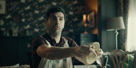第2集,他油漆工作的最后,因为距离的缘故,天花板最中间的位置没法涂上油漆,他把雇主家的一扇门拆下来,拿书和凳子等垫着,把拆下来的门放在左边墙壁的上面,以此来延长他可以触碰的距离。结果他华丽地在别人家里玩了一趟滑梯。最后,他为了解决这个问题,竟然拿了一把仿真枪,用开枪的方式把油漆弹到天花板上去,你不得不承认,他真的很有创意。