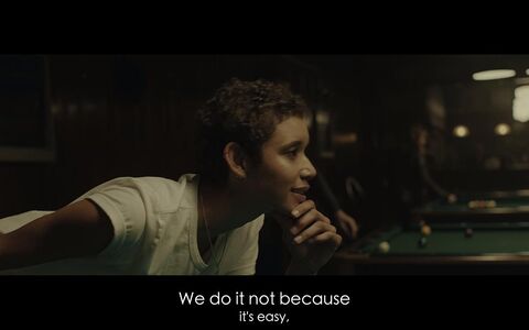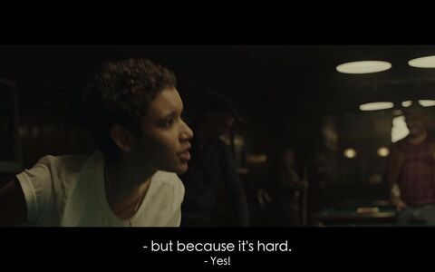 两个学霸在台球厅里的这段励志对话,我认为是全片励志的内核。女主讲了她高中时如何通过努力赢得荣誉,战胜了讨厌的天赋者的故事。而年少时的鲜花和掌声,也成了把她困住的牢笼,死磕过,胜利了,就试图把这一理论套用到自己整个人生上,这是不理智的,也恰恰是女主脆弱,自尊低的反向体现。
