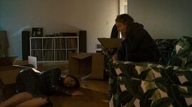 只见艾米独自一人悲痛欲生,她打开一瓶葡萄酒,浏览着网上的火葬瓮,反复听莫扎特的安魂曲。令人讶异的是,这整个过程并没有电影过场戏一般匆匆而过,反而认真的以一种独特的表演方式,安静地将镜头静置。也因为这种没有推进任何情节的静止,我们才能看到角色强迫我们思考的一种直面死亡的状态。