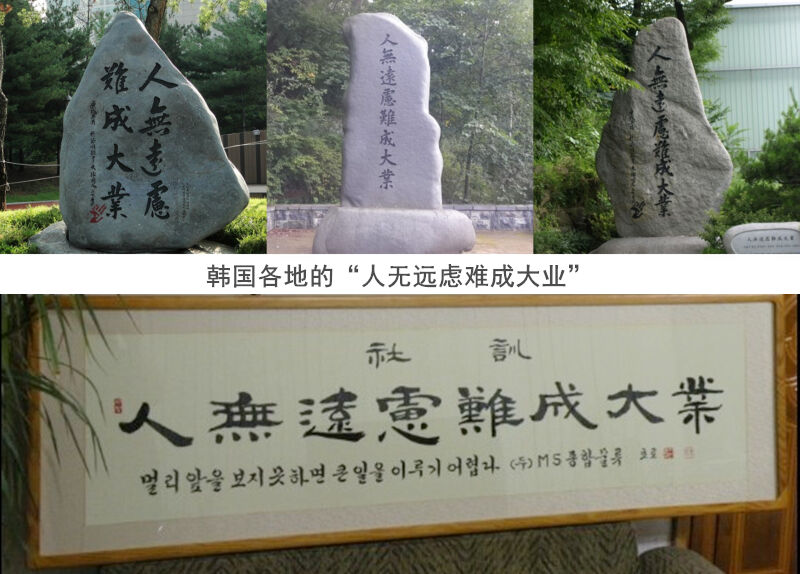 韩国的“人无远虑,难成大业”更直白,和孔子的“人无远虑,必有近忧”有关系吗?被儒家文化熏陶千年,很难说没有。