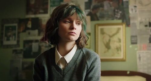 而女主amber则显得更成熟,她讨厌绿洲,喜欢激动地谈论波伏娃,对每一个指点她的人竖起中指,随着电影的推进,她对自己的认知也越清晰,不同于男主,在遇见Sarah之后,她越来越主动,从一开始她就通过租场地给发情的少男少女来赚钱,最终攒到了满满一个披萨盒子的钱,有足足2000镑,她本来计划靠这笔钱来逃离这个让她窒息的小镇,可在影片最后她并没有离开,因为她已经不要靠逃离来保护自己,她足够自信,也足够爱自己,即使在这样一个小镇她也可以继续安然的生活。