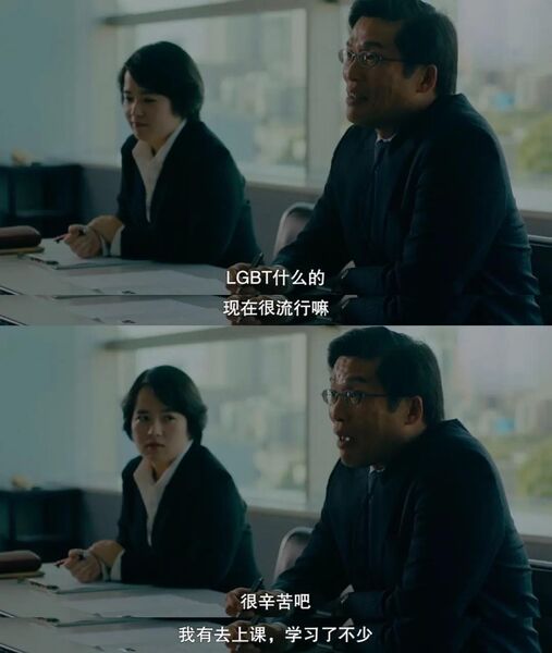其中最微妙的一个场景,是一位面试官看到凪沙来应聘,试图表达自己对跨性别者的尊重。他很笨拙,对LGBTQ 的理解也很浅薄,但他仍对自己的表达很自信,这种优越感无疑是一次尴尬的中伤。