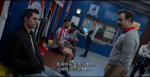 广告只负责碎片化的搞笑桥段,拓展成电视剧后剧本就需要更加精雕细琢。首先是给泰德拉索这个人物设置更加具体和本土化的背景设定。在广告中,他只是个橄榄球教练。在电视剧里,泰德拉索是美国NCAA橄榄球二级联赛的冠军教练。率领大学球队夺得次级联赛冠只是让他的大名火遍全美的次要原因,真正让泰德拉索成为网络红人的原因是他夺冠后在更衣室热舞视频。