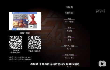 另一个被观众称赞的地方,则是动画的配音配乐。配音方面,剧中角色的配音不仅贴合角色形象,而且很舒服、不端着;配乐方面,"高边疆号"起飞那段的bgm全程高燃,片尾曲《夜航星》不仅旋律动听,歌词也十分贴合主人公章北海的人生轨迹。