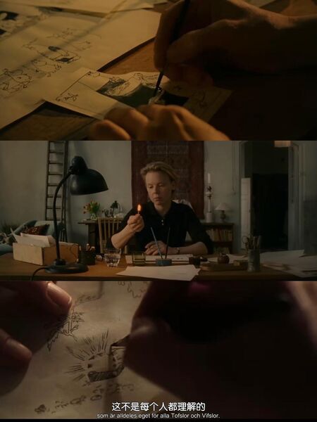 电影更多涉及Tove的私人生活,对于姆明,则轻描与淡写。我喜欢导演的取与舍。既然是传记片,我更想透过镜头,去观察人物生活的背景,还原一个曾经的人,一个陌生的人。我想了解活生生的人。