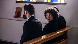 Tom清醒并出院后自然在亲朋好友帮助和陪同下举办了葬礼,在教堂的仪式上,有人发现Tom完全没有提及Kate——作为妻子且同为受难者,却被丈夫在葬礼上完全忽视。因此观众在第一集应该就能有一个被引导的思路,即凶手是Tom,但动机不明。