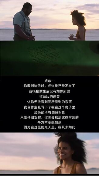 只有啤酒男最惨,明明是友好幽默的人,值得好结局,但他拒绝了天使的陪伴,最后关头开始怀疑和仇恨,得不到自己想要的就翻脸。最后一个人走向夜幕。如果是直接走进夜幕也就罢了,但本片拍摄此人的脸上却是十分的痛苦和恐惧,是否在表达“天意难违”的观点呢?这段戏我不喜欢,啤酒男翻脸固然不太得体,但他怀疑和拒绝天使没什么问题,信和不信都是个人选择,为啥不信就得悲惨结尾