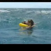 消失后,当他们以为没希望时,男主想把女主救自己时的救救生给女主,女主不愿,后来有船过来,男主的伤口吸引了鲨鱼,男主上船后,女主上船时还替她担心,幸好没事,安全得救