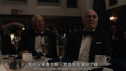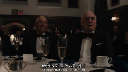 老查尔斯只需一个电话,就让原定好的赌场位置换到了另一个市,让波比的大额投资打了水漂。在波比怒而闯到耶鲁校友会时,老查尔斯和儿子查克都衣冠楚楚,和身着T恤的波比形成鲜明对比。一边是出身名校的老钱家族,有家族的人脉和父亲庇护,一个是成长于贫困街区,靠自己白手起家的金融新贵。此情此景,看着查克和他身边的父亲,从来没有得到过父亲庇护的波比冷笑着说出一句话: