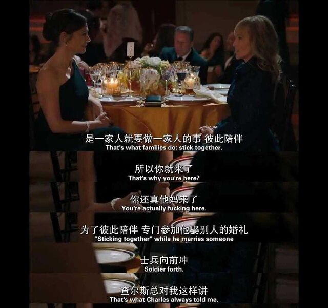 可怜被他洗脑了一辈子的前妻,当温迪问她,为什么还要来这种场合时?她说:查尔斯说过,人生要不断地前进,家庭才是第一位的。