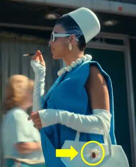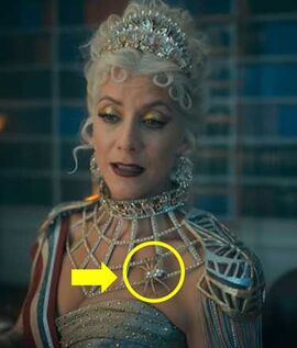 handler花哨服饰,暗藏“蜘蛛”,从包上,到胸前,到头顶,象征着她的权力上升。