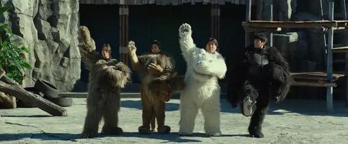 怎么看这四个由员工扮演的动物,北极熊、狮子、树懒、大猩猩,都是假到爆、极度敷衍。