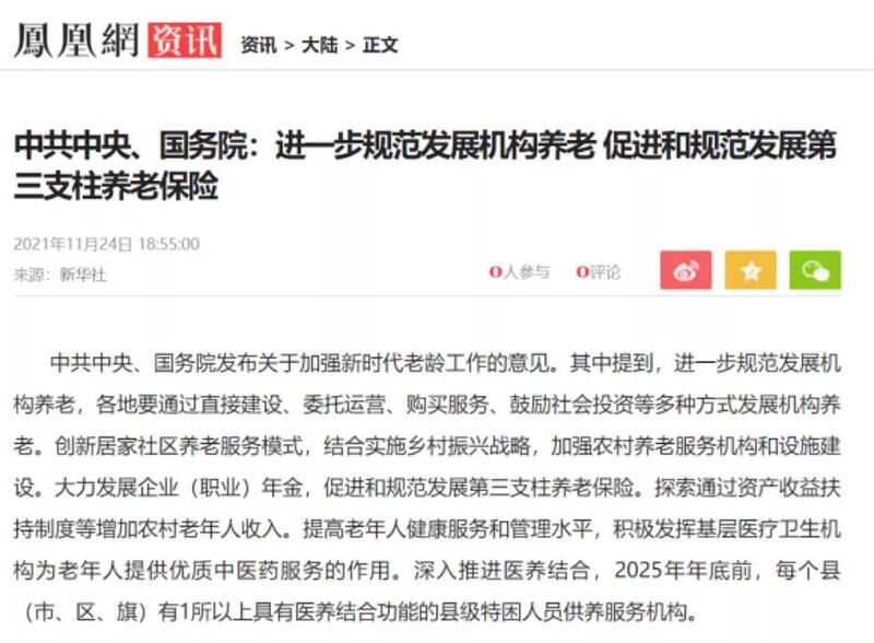 首先,中国已然步入老龄化社会,“十四五”时期,中国60周岁及以上老年人口预计将超过3亿,占总人口比例将超过20%,国家号召,要“注重发挥家庭养老、个人养老的作用”。