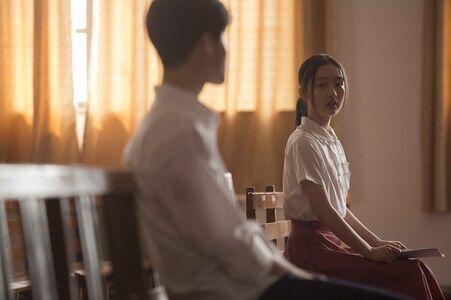 《你好,之华》的镜头运动比较丰富,多次运用旋转镜头。最突出的当属少女之华介绍尹川与之南相见时的场景,虽然经过了几次剪辑,机位也有所切换,但摄影机自始至终都缓缓围着人物旋转,不断环绕着身处青涩恋情中的少年和少女,恍若悦动起舞的心灵,透现着纯洁与真挚。
