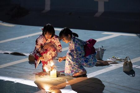 《你好,之华》直接以葬礼开篇,由之南与尹川在空荡荡的礼堂里排练毕业致辞作结,给人的感觉还是偏向阴郁和怀旧的,恍若一切都应该重新回到那个“让我们觉得自己的梦想还有无限可能的地方”,但我们都知道,回不去了。相比起来,《最后一封信》首尾都是姐妹的女儿们(还有一位其他的同学)在风景秀丽的森林小瀑布处游玩的远景镜头(只是一个前推一个后拉,符合常规镜头语法),几人嬉笑着奔跑,格调欢快。最后切为鮎美(广濑铃)的近景镜头,她若有所思地望着画面左方,之后渐次转向右侧,并迅速走出画外。这是一个明显寓意着先回顾与思考过去(人类习惯的视线运动方向是从左向右,故左边代表过往或开端)、再快步走向未来的收尾。结合此前提及的对祭拜灵位场景的布光、慢镜头的使用,再加上乙坂镜史郎与阿藤阳市酒馆会面场景中间或插入的华美镜头(鮎美与飒香穿着和服燃放烟花,非常是枝裕和的镜头),我们或许可以说,《最后一封信》是更为积极正面、乐观昂扬的版本。
