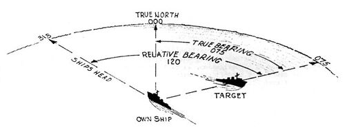 按:这里需要介绍一下此片中战术和导航涉及的方位问题。方位有两种,绝对方位和相对方位,如下图: