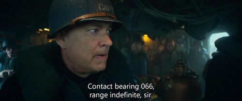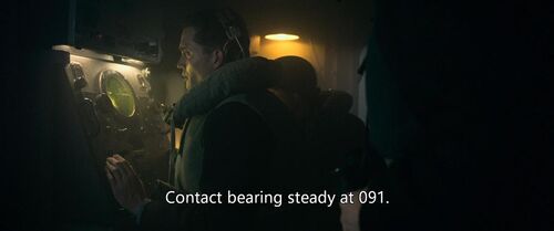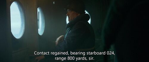 结果传来令人惊讶的结果,U艇出现在066方位,距离不明。(补充一句,这里对小说作了修改,原设定为潜艇出现在port beam,即正左舷方向,001方位。估计是改编时发现这个设定以潜艇潜航的速度是不能完成的,所以改成幅度较小的066了)
