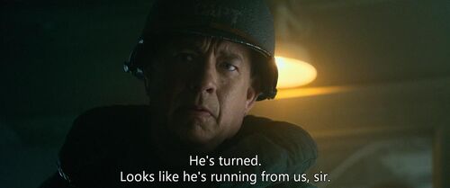 在这段剧情中,汤姆汉克斯把一个高度尽责,性格沉稳,但初次上阵情绪紧张的指挥官刻画得非常完美。而且这一切都是在一个高度紧张、没有任何铺垫空间的军事决策场景下自然呈现出来的,这样的表演功力也是非常了不起的。