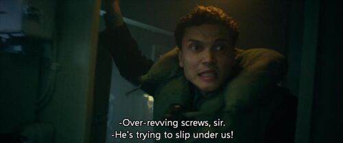 电影的还原也符合我对海军战术基本面貌的认知,比如对射角的表现,对护航阵型的表现,对友军误伤的表现,都是前所未有的写实主义。除了那个蹭鱼雷稍显过于戏剧性了(虽然撞击引信因角度太小而无法起爆是完全可能的)。