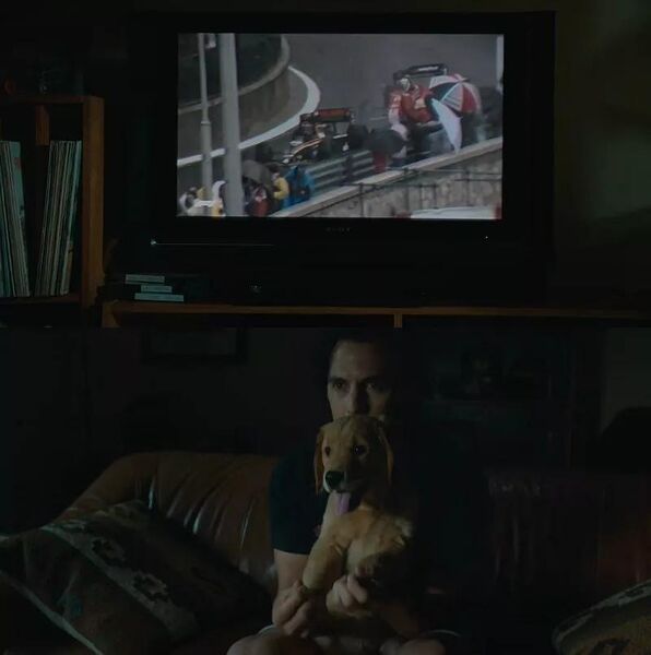 那是丹尼一见钟情的伊芙,她的出现就像恩佐人生赛道上的大雨,不过狗狗可不是什么好“赛车手”,看着丹尼满眼都是伊芙——它吃醋了。