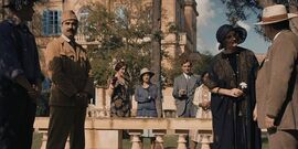 人物登场完毕电影进度已经过半,前半部除了那只猴子的意外死亡,并没有太多推理悬疑戏份。影片全部围绕矗立在伊拉克沙漠中的英国风格富丽堂皇领馆展开,影片中的这座领馆令观众大开眼界奢侈至极。进入到挖掘现场后,影片终于有了一丝丝阿加莎的的味道。随着领事馆夫人的被杀影片进入到了高潮,每个人的罪恶逐渐暴露在了阳光之下。阿加莎抽丝剥茧挖掘出每个人背后的故事,逐渐接近了这场阴谋的真相。在经典的阿加莎似的结尾中所有人齐聚一堂,名侦探闪亮登场推理出真凶。不过本片的结尾称不上推理,最多是讲述事实。观众不应该失望,本片不是一部好的推理片,但影片揭露了英帝国殖民者的罪恶。通过伊拉克保安队长之口抨击英帝国殖民者堂而皇之以挖掘文物之名掠夺他国的文物。领事夫妇美国商人狼狈为奸公然在黑市贩卖文物更是揭露出殖民者唯利是图的罪恶。黑人佣人更具代表性,代表着被英帝国殖民者压迫奴役的人虽然自甘堕落但思想上已经开始觉醒了。领事结尾的一席话把殖民者的丑陋赤裸裸的呈现给观众,打着为了大英帝国的幌子挖掘石油淹没遗迹毁灭他国的文化,其实都是为了殖民者一己私欲,以前是靠着挖掘文物中饱私囊买官进爵,现在只是换了挖石油。
