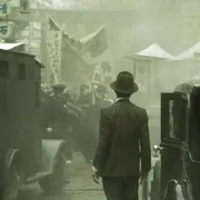 名伶绿牡丹作为“市井”的一部分,在片中前后两次出场。刚刚来到上海不久的芥川,在戏院体会到的是莫名的吵闹感,赠予戏台演员的花朵也仅是象征性的礼物;而会面过诸多人物并被烟花少年之死撼动内心的芥川,在那吵闹中体会到的却是难得的慰藉感。他曾学着接待者那样对死缠烂打的卖花人说“不要”,最后却对卖花的小孩子表示“全要”,并将那一大捧花送给了伶人。伶人在接过花后不雅的举止,如果是初来此地的作家先生或许会被吓一跳,而此刻他全然不显惊愕,因为先前已有些事情远比此令他精神受冲击得多。