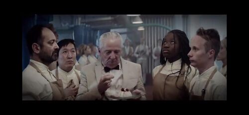 像带着狗的前工作人员一样,同样不知道有很多人挨饿的厨师长认为奶冻被送回是因为有一根头发,在对比过几个厨师的头发后斥责有嫌疑的厨师,这其实就是整个故事的结尾了。
