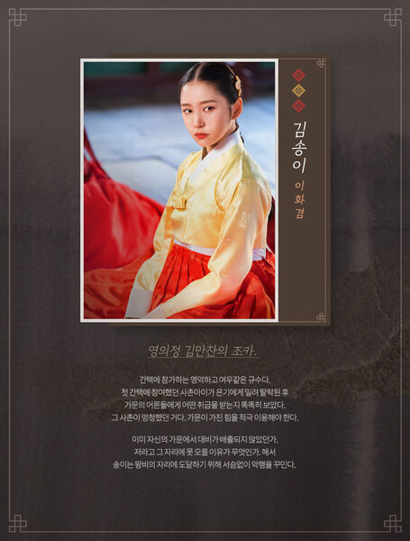 君王李庆由金旻奎饰演。他是一位权谋诡谲、冷峻果断的帝王,以铁血手腕掌控朝堂,在后宫暗流涌动中步步为营。表面威严如山,实则深谙人性博弈,将权力玩弄于股掌之间。他的存在犹如悬顶利剑,迫使各方势力在生死抉择间殊死较量。这位枭雄以残酷手段维系江山,却在宿命轮回中逐渐陷入权力与情感的双重牢笼,成为女人们战争中最具威慑力的棋手。