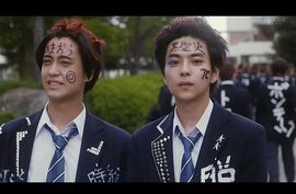 日本的电影一直不太合我的胃口,因为感觉他们的情绪都来得莫名其妙,做作。r一个其莫名其妙的学校里面有一些莫名其妙的规定要求。所有女生的头发必须是黑色,女生的头发不能用簪子固定只能用橡皮筋扎,男生也有很多规定。r一个头发天生棕色的女生,因为是因为头发不符合学校的规定,所以总是不能来学校上客,但是创乐喜欢她,他希望他能来学校上课一起毕业。 又一次女生在被拒绝进入校门之后,创乐找到了他说希望她能回学校来上课,一起毕业。他说他会为了这个女孩而改变学校的规定。女孩很感动,答应了他暂时染回头发,回学校上课。之后呢,男孩一直希望能够改变学校的规则,但是他自己的胆小懦弱,让整件事一直没有发生在最后,女孩将要退学的时候,男孩终于忍不住了,他像疯了一样暴跳,懊恼自己只会动嘴皮子,他故意引发了一场火灾事情,当全校的人都来到了操场上,他在操场上大声出来他喜欢女孩儿的话,最终让学校同意撤回女孩退学的决定。r前前面的叙述一直平平淡淡,到最后高潮的时候所有的人为了支持创乐而愿意为他做一些事情,这个情节有点感动,但有点做作。r在这个过程中,他的好朋友一直在陪着支持他。相对于他这个小透明,他的好朋友是一个非常张扬的存在。在这部剧中他也做出了一个非常非常夸张的举动。在告白对自己的老师告白,被被老师拒绝之后,他仍然攒下了18万(价值等同老师前男友送她簪子)。拒绝之后,他把这18万买了500个草莓蛋糕请全校500个同学cosplay棕发女孩父亲的形象,免费吃蛋糕。其实也正是他被老师拒绝之后,在墙上写的涂鸦以告别初恋,引发了全校同学对于校规的吐槽,最后请全校同学cosplay释放了一下压力,场面有些轰动。r反抗,青春,爱的能量,突破自我,是这部电影的主题元素。