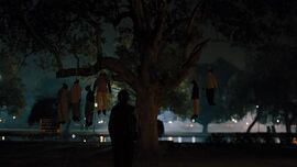 这个结尾镜头,第一层说人民的愤怒,同时也在说人民的愤怒发泄无门。第二层,愤怒无果。杀了这帮魔鬼,完全无法让他们明白自己是魔鬼。剧里最变态的杀人犯,最后就轻易在狱里自杀了,给人一种正义落空的茫然感。跟《七武士》结尾一样,武士怒吼坏人呢,坏人在哪里,其实坏人全死了,他只是无法弥补自己的愤怒空洞。看那部被禁的纪录片也一样,纪录片里采访罪犯,就算要枪毙,他也平平静静自信满满对着镜头说,在强奸里,女的责任更大。看着只觉得不寒而栗,不是因为他恶,而是因为他那种“不恶”的姿态。第三层,六个假人全黑无脸,暗示被处决的罪犯完全不具备身份价值,说白了,杀他们无济于事,病源更大更深,连凶手也意识不到错,还指望潜在犯罪者意识到吗,更多人会犯罪,还是要继续杀下去。现实也果然如此。第四层,一棵黑夜里的大树,是人类社会的缩影,但你看看,这棵树什么样子?《德里罪案》是这个时代的《杀人回忆》,完全够格,可惜已经不给这种电影造神了。