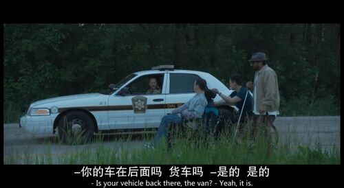 可盲人开车终究不是事,另外两人一个不注意,车就开进了公路中间的草丛里,陷进去了,三个残障人士只能在公路上徒步,又很自然地吸引到了警察的注意。