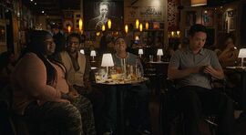 晚上,一行人在酒吧里泡吧,他们甚至合力赶走了一个欺负萨姆的流氓,马特在这里成功与一个女孩搭上了讪,莫也与萨姆欢歌起舞,独留一个全身瘫痪的斯科蒂看着眼前这一切的繁华。