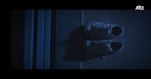 镜头一闪,原本好好地穿在脚上的白运动鞋,却被人摆到了楼顶天台上,这是谁要试图伪造朴同学自杀的假象?