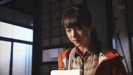 小梢幼年失去母亲时,其实已经到了可以懵懂记事的年纪。所以在纯反对她在政客名门子弟交往的时候,她反问渡边律师:“十几年前您成为我爸爸之前,到底发生了什么?”回应她的是父亲痛彻心扉的面容。为了不让爸爸难堪,小梢曾向碓冰提出过分手。父亲用尽全力爱着没有血缘关系的女儿,小梢在成长的十多年间,早已明白亲情并非依赖血缘而存在。作为与纯没有血缘关系的女儿,小梢也想回应父亲的爱。然而,待小梢知道真正真相之时,也是父亲离开她之时。发现桌上的信、拆开信封、展开信纸,整个过程都是缓慢而迟疑的,或许小梢隐约地明白到,这一次父亲要永远离她而去了。几十年的苦难人生提炼成简单的语句呈现在几张纸上,她终于知道了父亲的过去发生了什么。与小梢成为家人,小梢所展现的所有快乐和悲伤,让纯知晓了生存的喜悦。不曾想到小小的自己竟给父亲带来这么大的希望与感动,小梢的眼泪就像断了线的珍珠,大颗小颗簌簌落下。最后的镜头,泪水落在了父亲真实的姓名上,这是给曾为罪犯的马场纯献上的最珍贵的礼物。这封信的内容如同一颗大炸弹,可能不足以让小梢完全消化,但是想到成为自己父亲之前就已对自己和母亲伸出援手的渡边律师、想到身为逃犯却依然想着给自己幸福的父亲、想到看着自己成长自己也深感慰藉的父亲,小梢对纯的感激和爱戴依然不会褪色吧。