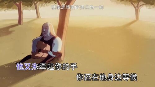 而随着阿财唱出《连备胎都不是》的“悲情魔音”的时候,画面变成了充满90年代复古悲情ktv风格的画面,一旦中招就会陷入“悲情男”的模式,脸上写满了忧郁。