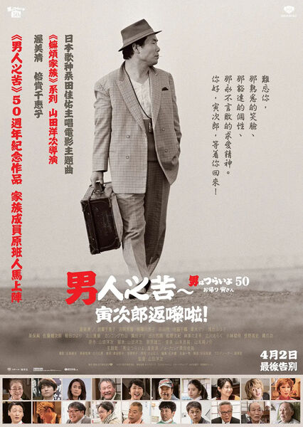 从1969-1995年,电影《寅次郎的故事》拍摄公映了48部,直至演员渥美清去世,未完成的第49部才被迫停止。2019年,已经年近90岁的日本电影导演大师山田洋次又拍摄了这部世界上最长的系列电影的第50部《寅次郎的故事:欢迎归来》,以纪念这个风靡日本社会半个世纪之久的平民喜剧人物形象诞生50年!