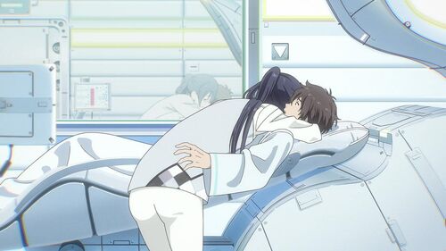 果然,如此明显的一个意象不可能没有缘由地出现在如此醒目的地方,画上的克里斯蒂娜是孤寂与坚强的,虚拟一世界的坚书直实又何尝不是?纵使被实验的电流伤害无数次,纵使最后造成了“脊髓损伤、左下肢轻偏瘫”,男主坚书依旧匍匐着前进,身体的崩坏与世界的崩坏,无论哪一样,都无法阻止他想要再见女主一面的渴望。