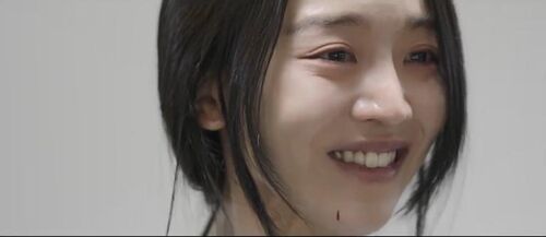 第一场演技爆发的戏是在秘书大叔的灵前。女主车祸醒来,重见光明,得知一向疼爱她的大叔没能幸存,还把眼角膜捐给了她。蹒跚来到灵前,想起大叔曾经说想看到她闪亮的笑容,她笑了。笑得比哭还难看,笑得让人毛骨悚然。