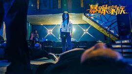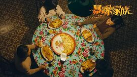 没有磨皮换脸的阿宝滤镜,没有浮夸粗糙的特效,高级的电影色,朴实的面孔,人物的每一个表情甚至是皱纹的波动都可以看得一清二楚。回归到电影拍摄最初最基本的要求,《暴躁家族》已经在 好刀法、好演员 两方面表明了它追求好作品的诚意和态度。我不懂专业术语怎么描述高级的镜头,但在影片中会不时闪现出类似《东邪西毒》、《无间道》等院线经典的美丽画面,起码从电影塑造美的角度,我可以抛开偏见继续看下去。比如开场的打戏点出了电影的基调,酒瓶子砸向画像的瞬间在致敬《教父》;恶战之后一家四口泰然处之庆祝生日会,玩物们狼狈下跪,隐约之中看到了《发条橙》的荒诞。