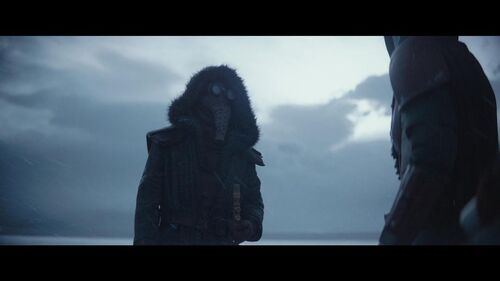 这个先和主角发生冲突,后来营救主角的重装曼达洛人叫帕兹·维兹拉(Paz Vizla),由本剧编剧乔恩·法夫罗(Jon Favreau)亲自配音。在《星球大战》传说宇宙网游《旧共和国》里,就有一个曼达洛人氏族姓“Vizla”。谢·维兹拉(Shae Vizla)就来自这个氏族。她后来成为曼达洛人的领袖,号称“复仇者曼达洛”(Mandalore the Avenger)。在《星球大战》正史宇宙动画连续剧《克隆人战争》和《义军崛起》里,有个拼写类似的曼达洛人氏族——“Vizsla”。第一位曼达洛人绝地塔·维兹拉(Tarre Vizsla)就来自这个氏族。军国主义组织“死神卫”(Death Watch)创始人超凡维兹拉(Pre Vizsla)也来自这个氏族。而且,超凡维兹拉的配音演员就是乔恩·法夫罗。