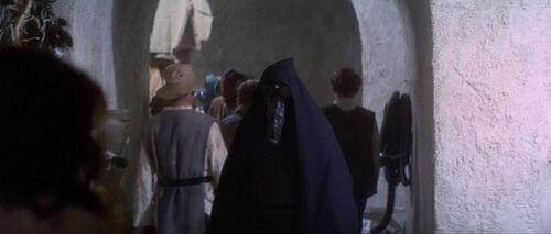 在这个场景里,注意屏幕右边有个提列克人。提列克人是《星球大战》作品里最常见的种族之一,最早出自《绝地归来》。