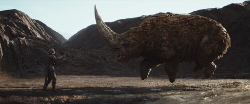 这头最后被原力举起来的大型动物叫“泥角兽”(Mudhorn),是本剧原创生物,先前没有在任何其它作品里出现过。