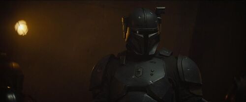 主角小时候是被一群死神卫(Death Watch)解救和领养的。死神卫是曼达洛人中的一个军国主义派别,最早出自2002年的漫画《詹戈·费特:狩猎季节》(Jango Fett: Open Seasons),后来在2010年被《克隆人战争》第二季第12集《曼达洛阴谋》(The Mandalore Plot)引入正史。他们在克隆人战争中一度统治曼达洛,并听命于摩尔(Maul),同时与共和国和分离势力为敌。死神卫的臂章是维兹拉氏族(Clan Vizsla)的杰加拉尔(jai'galaar)标志。“杰加拉尔”在曼达洛语里的意思是尖啸鹰(Shriek-hawk)——曼达洛本地的一种动物。另外,把主角带走的这名死神卫是由布伦丹·韦恩(Brendan Wayne)扮演的。他是美国西部片巨星约翰·韦恩的孙子,也是主角在本剧里的动作替身。