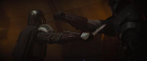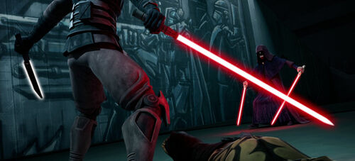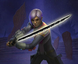 帝国时代,年轻的曼达洛人起义者莎宾·雷恩(Sabine Wren)从达索米尔获得暗剑,在一场决斗中打败曼达洛超级突击队指挥官加尔·萨克森(Gar Saxon)后,成为暗剑的合法持有者。