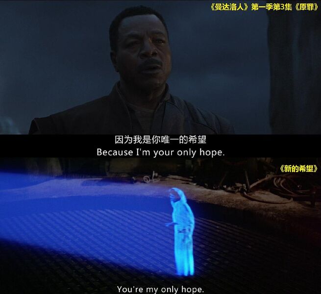格里夫·卡加说了一句类似莱娅公主在《新的希望》里说的台词。