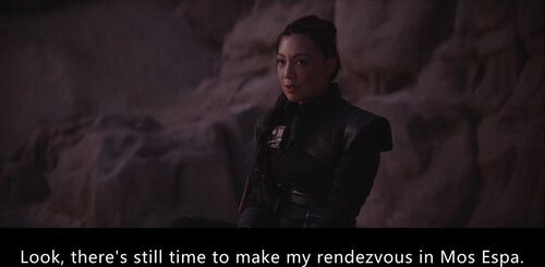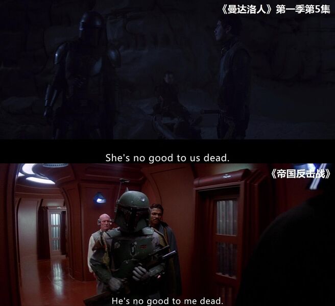 芬内克·尚德(温明娜饰)的台词终于确认赏金猎人行会、曼达洛人部落和帝国残余势力所在的星球叫内瓦罗(Nevarro)——这是本剧原创的星球,先前没有在其它作品里被提到过。