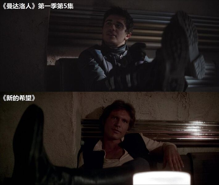 托罗·卡利肯在查尔蒙小酒馆里的坐姿与汉·索洛在《新的希望》里“先开枪”时的坐姿一样。