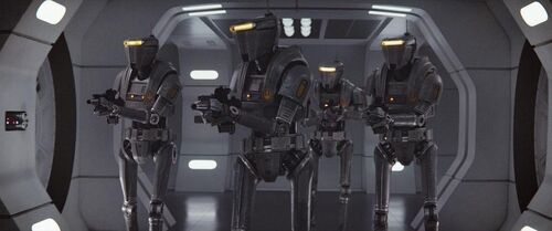 这是本剧原创的新共和国安保机器人。它们使用的武器是DH-17爆能手枪——义军同盟最常用的武器之一,最早出自《新的希望》。